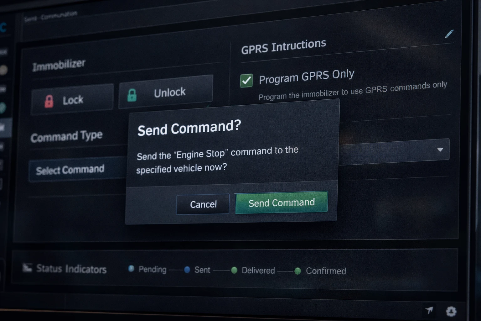 Send immobilizer lock and unlock commands, trigger GPRS instructions, or dispatch template-based commands predefined for your device model — from any browser, on any device, from anywhere in the world.